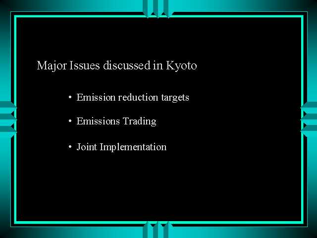 - under an international emissions trading regime, a country (or firm) would be able to meet its emissions reduction target by reducing pollution itself, purchasing reduction credits from another country (or firm) that was able to achieve excess gains, or some combination of both