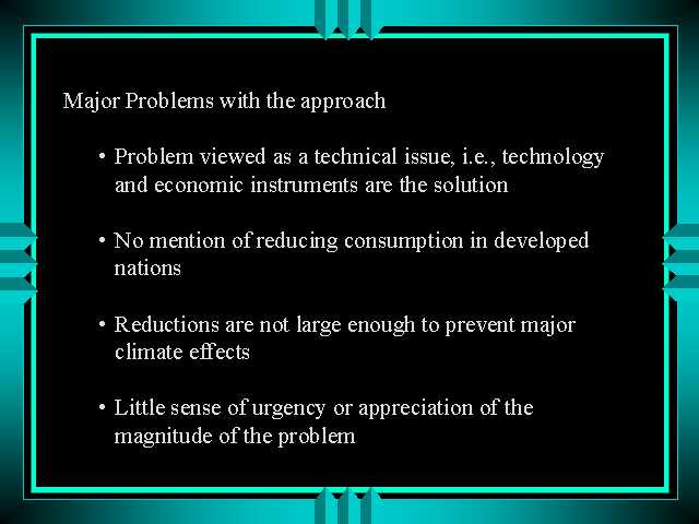 Aside from a few environmental groups and the AOSIS. there were few attendees at the Kyoto gathering that seemed perturbed about what may result in major evironmental disasters. It was very much an exercise in avoiding a bad deal by doing the least, in what was basically an economic negotiation.